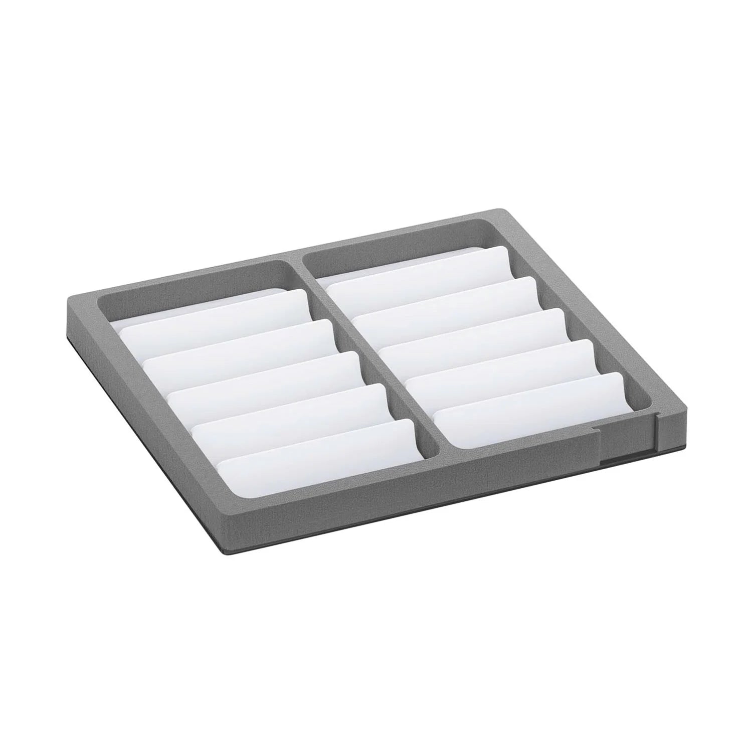 I tavoli sono dotati di inserti per occhiali disponibili in diverse dimensioni. Ciò ti offre una maggiore flessibilità rispetto ai tavoli convenzionali. Puoi tenere in magazzino meno tavoli, risparmiando così denaro e spazio.